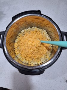 I am being honest here…I have tried many IP mac and cheese recipes and the one I have chosen as THE one is what I am sharing with you here. The secret to the perfectly creamy and smooth cheese sauce in here is a can of evaporated milk. I like to zhush up the seasonings a bit…I add granulated garlic and green Tabasco sauce before cooking and offer a variety of flavored blends (along with more green Tabasco sauce) at the table along with freshly sliced green onions, bacon bits, or shredded meat for everyone to top their bowl and customize it to their liking. One of my daughters loves to add in Taco Seasoning (recipe coming soon) mix before cooking and taco meat. I have not yet tried it this way. We have tried it with cajun seasoning and that is really good. I have also added in leftover cooked ham, shredded pork, or Greek chicken all with great results.